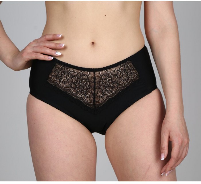Трусы высокой посадки. В передней части украшены элегантным кружевом. Задняя часть гладкая.